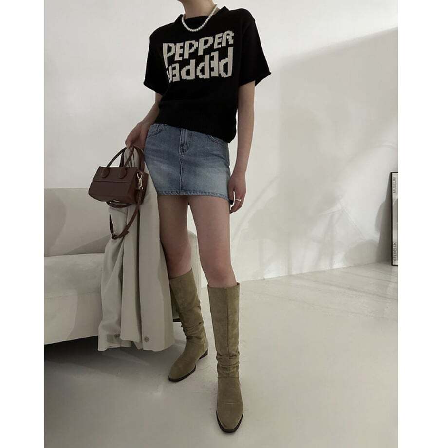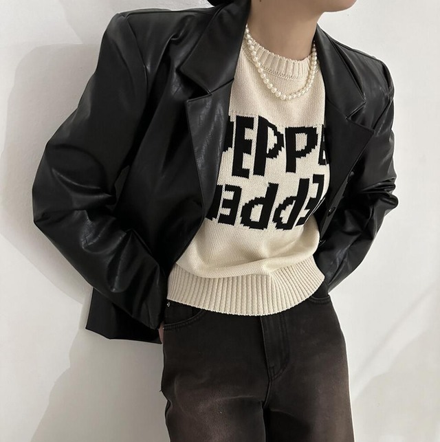 ペッパーロゴ ニット PEPPER トップス ニット 半袖 オフホワイト ブラック 大人 カジュアル 着回し IMAGIBUNE 新作 人気 シンプル レディース TP-1457CMY 韓国 20代 30代 40代 春 秋 トレンド ワンサイズ フリーサイズ おすすめ 可愛い