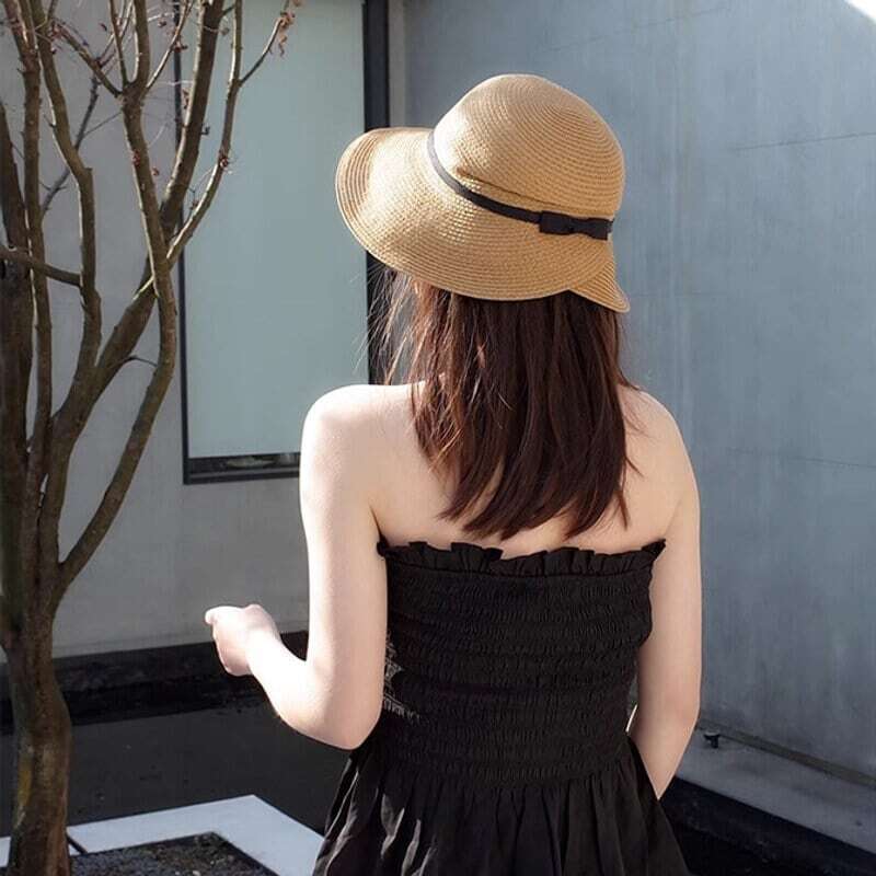 back bow ストローハット バックボウ リボン ハット 麦わら帽子 帽子 ストロー レディース ベーシック エレガント きれいめ シンプル 大人 HT-1631CMY IMAGIBUNE お出かけ 散歩 日除け 人気 売れ筋 小顔見え 春 秋 夏 キャメル バックシャン