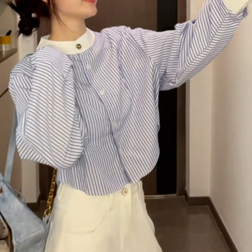 カラー: ブルー サイズ:cm S 着丈48 バスト105 袖丈61.5 M 着丈49 バスト109 袖丈62 L 着丈50 バスト113 袖丈62.5 XL 着丈51 バスト118 袖丈63 大人可愛いストライプショートブラウス。 シンプルかつレトロな雰囲気。 ■注意点 ・お取り寄せ商品となります。納期までに約2-4週間かかります。 ・パソコンやモニターの環境により実際の色と異なる場合があります。 ・ノーブランド海外製品は日本の商品に比べて裁縫が甘い場合がございます。 ・サイズは1cm~4cmの差が生じる場合があります。 ・こちらはIMAGIBUNEです。 以上の事にご同意いただける方のみご購入ください。ご同意いただけない方は実店舗で現物をご確認されることをお勧めいたします。