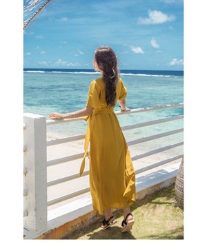 【送料無料】 リゾートワンピース カシュクール 美脚魅せ OP-008NM