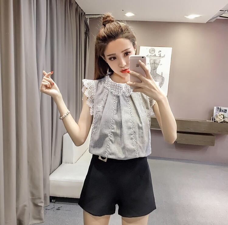【送料無料】 ガーリートップス ノースリーブ 襟レース 袖レース ファスナー TP-008NM