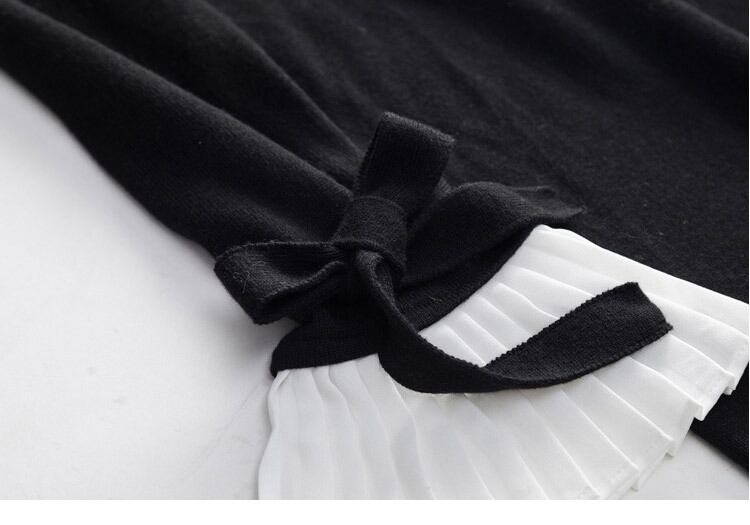 【送料無料】 ニットワンピース 長袖 袖コンシャス リボン ラウンドネック 細身シルエット タイト ショート丈 可愛い ガーリー ブラック シンプル デート 女子会 お呼ばれ 二次会 OP-100HM