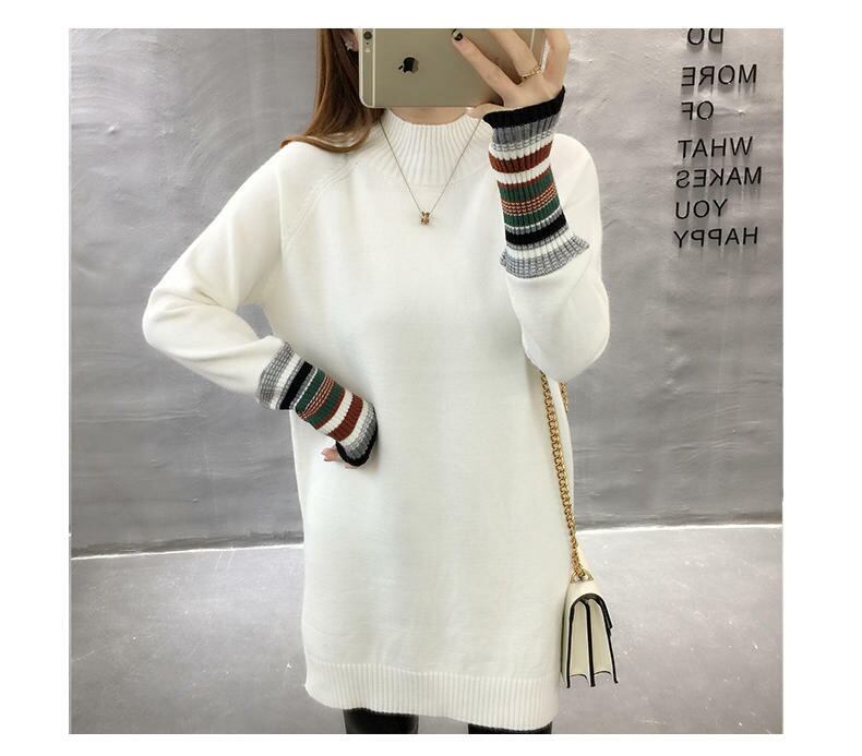 【送料無料】 ニットワンピース 袖口 ストライプ 袖口タイト ボトルネック ハイネック ミニ丈 ニット OP-061NM