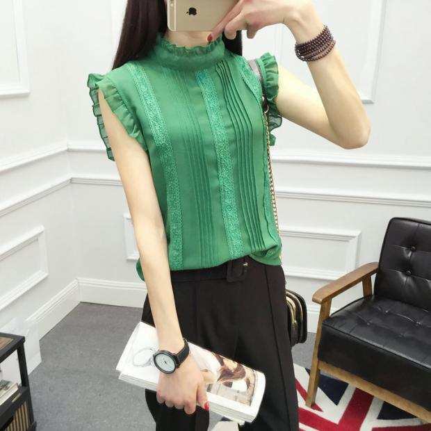 どんなアイテムとも相性抜群なシンプルノースリーブレーストップス。シフォン素材で夏でも涼しい☆首が詰まったデザインなので上品に着こなせます♪