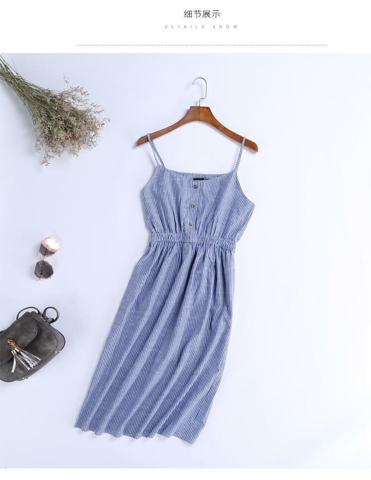【送料無料】 キャミソールワンピース ストライプ柄 膝丈 ウエストゴム 涼しげ 夏 シンプル ボタン OP-053NM