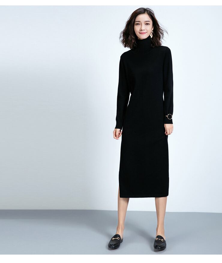 【送料無料】 ニットワンピース 長袖 ミモレ丈 サイドスリット ゆったり OP-009KY