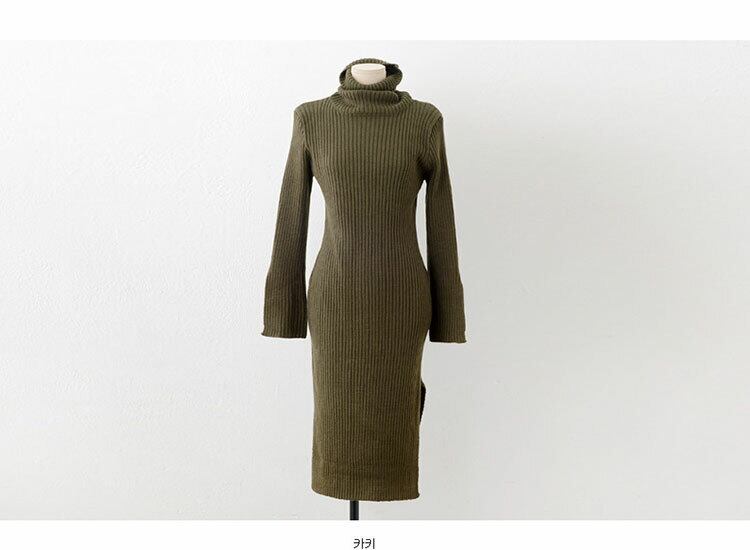 【送料無料】 ニットワンピース 長袖 ハイネック ワンピース スリム ニット OP-012KY