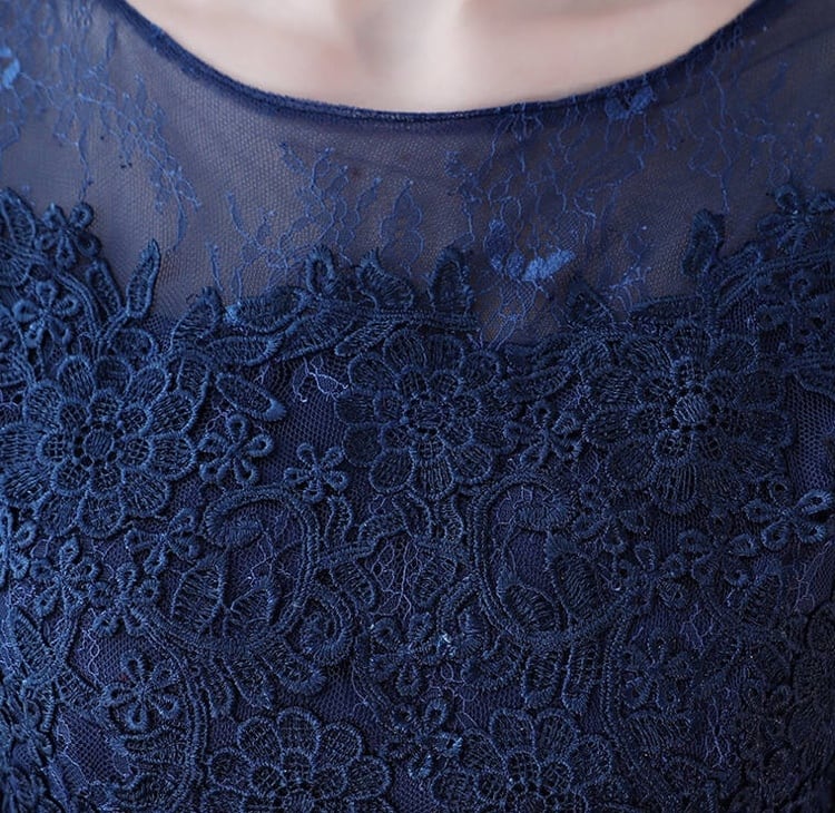 【送料無料】 ドレス 総レース 膝丈 フレア Aライン 透け素材 ウエストリボン 五分袖 上品 エレガント 結婚式 二次会 パーティ お呼ばれ フォーマル 花柄レース DR-005NM