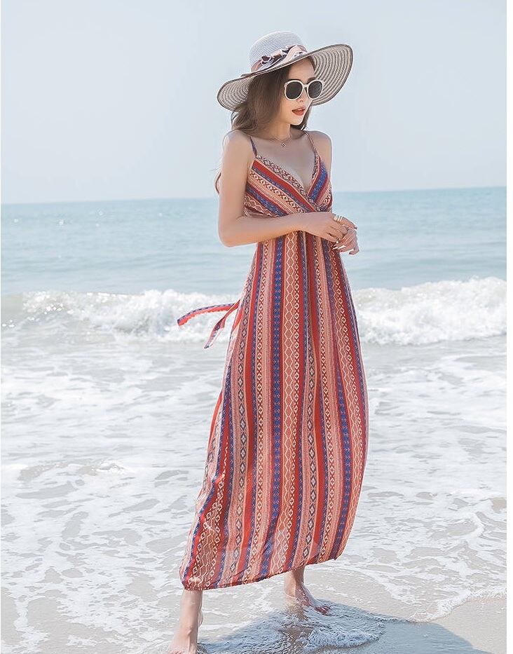 【送料無料】 ワンピース リゾート ボヘミアン 2種類 Vネック レースアップ カシュクール マキシ丈 スリット ビーチ OP-065NM