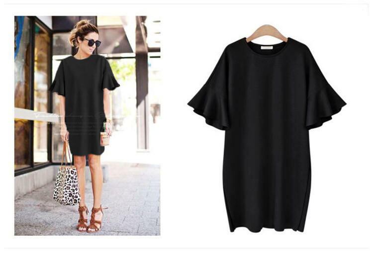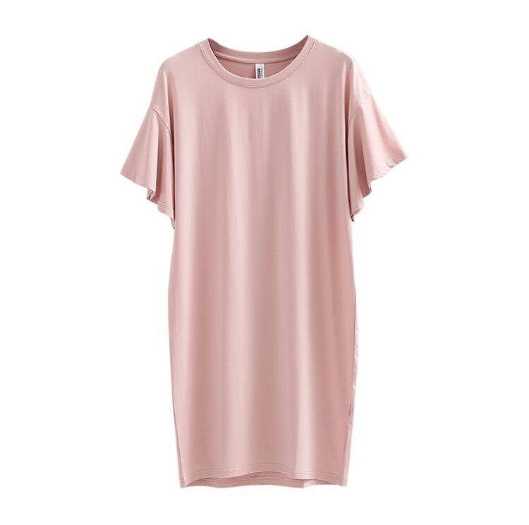 【送料無料】 ワンピース コクーン 袖フリル フェミニン ミニ丈 ゆったり 無地 体型カバー OP-068NM