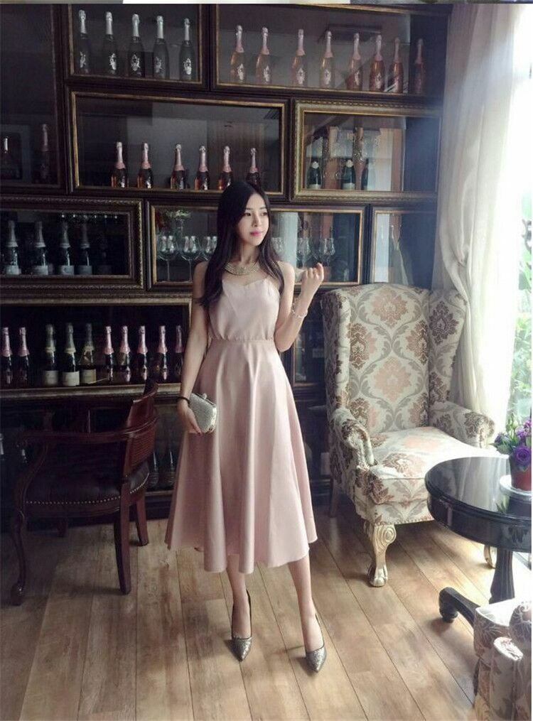 【送料無料】 バックシャン シフォンフレアワンピース Vネック ミドル丈 ハイウエスト セクシー 上品 可愛い パーティー 女子会 二次会 お呼ばれ 白 ホワイト ブラック 黒 ピンク DR-040HM