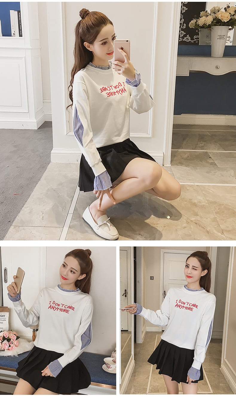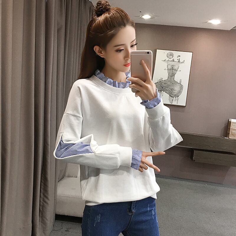 トレーナーにストライプのフリルがドッキングしたトップスです♪肘にはスリットが入って動くたびに可愛さが溢れるデザイン♪一枚でコーデのアクセントにもなり、丁度良い丈感でスカートにもパンツにも合わせやすいアイテムです☆