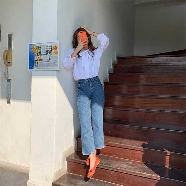 ネックリボンがアクセントの可愛いブラウスです♪シンプルだけど一枚でコーデのアクセントになる優れもの♪ボトムスを選ばず、コーデしやすいのもポイント♪通勤通学からオフまで幅広くお使い頂けます☆