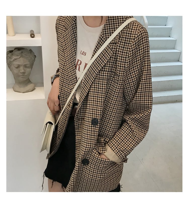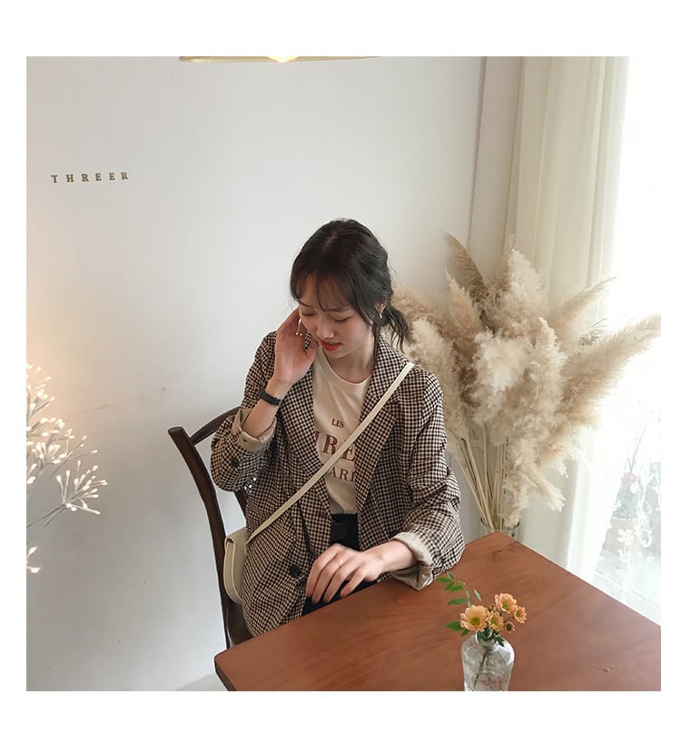 【送料無料】 チェック柄 テーラードジャケット スプリングジャケット スプリングコート レトロ ブラウン 茶 薄手 アウター 春 秋 大人 デイリー オフィス 通勤 通学 OT-001HM