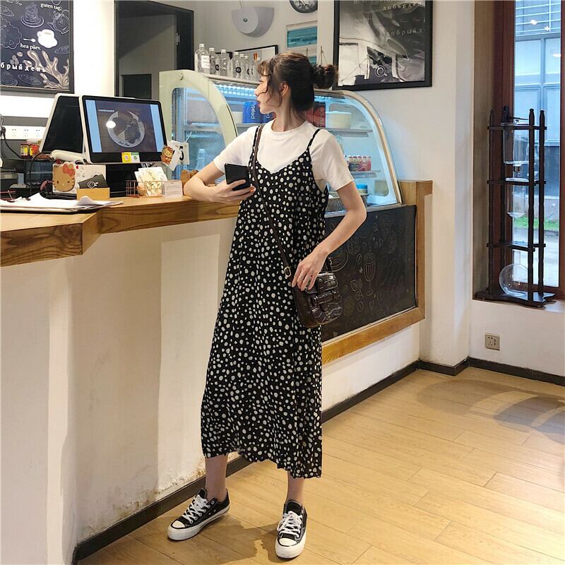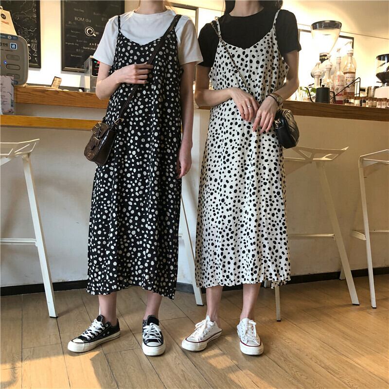 【送料無料】 レオバード シフォン キャミソールワンピース 2カラー ミディ丈 ロング丈 ノースリーブ 可愛い 着まわし レイヤード 重ね着 トレンド 韓国 オルチャン デイリー デート 女子会 夏 OP-046HM