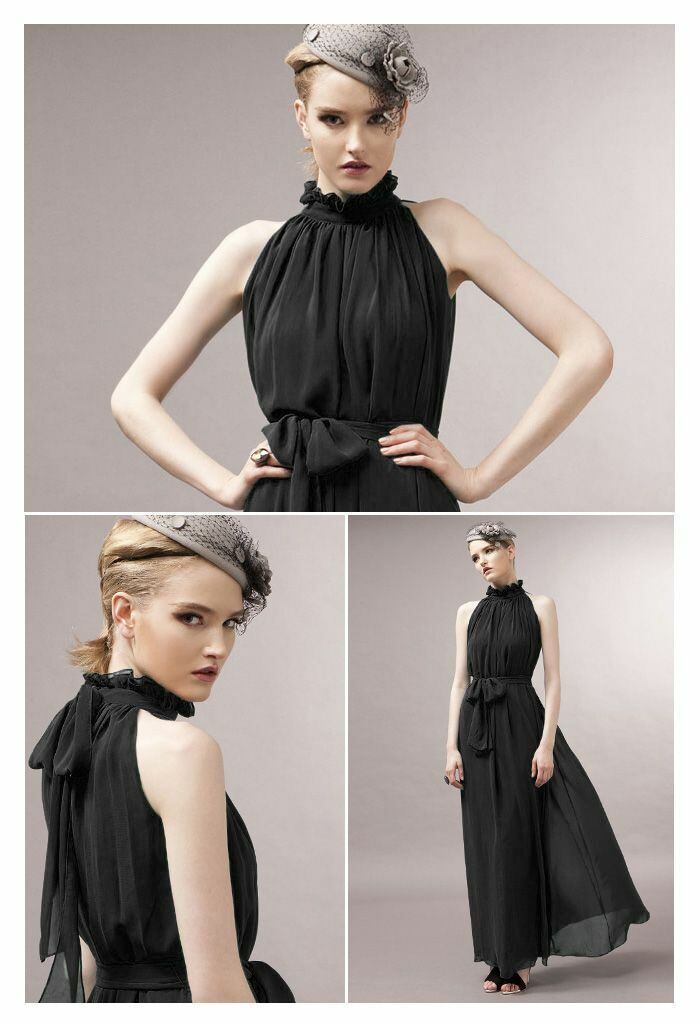 【送料無料】 8色展開!ネックスタンド カラーシフォンドレス ロングドレス ゆったり 大人っぽい パーティー 結婚式 DR-001KS