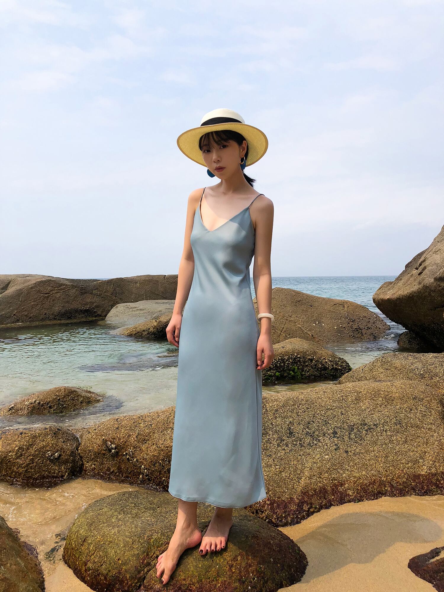 【送料無料】 ドレス 夏 サスペンダー Vネック レトロ シルク スリム エレガント DR-002SN