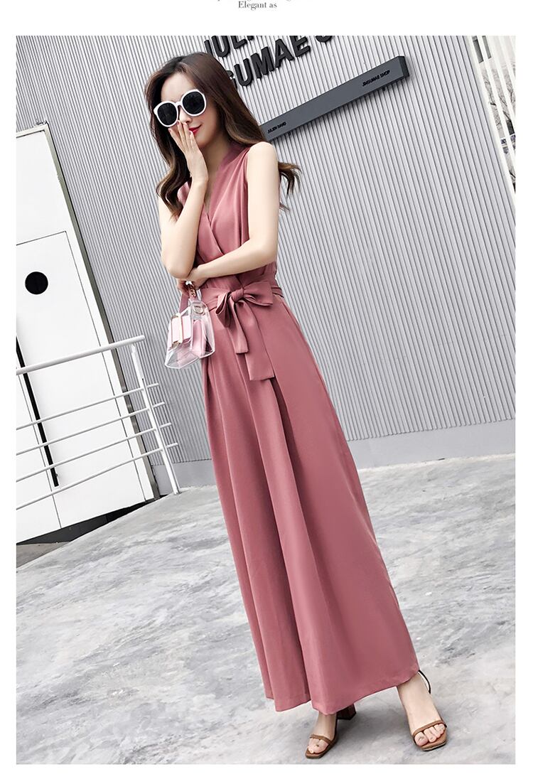 【送料無料】 上品 シフォン ノースリーブ ジャンプスーツ Vネック きれいめ オールインワン サロペット ワイドパンツ ハイウエスト ウエストリボン カシュクール オフホワイト ブルー イエロー ピンク シンプル 大人可愛い デート 女子会 パーティー 二次会 お呼ばれ 夏 通勤 通学 オフィス AI-009HM