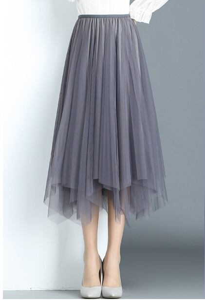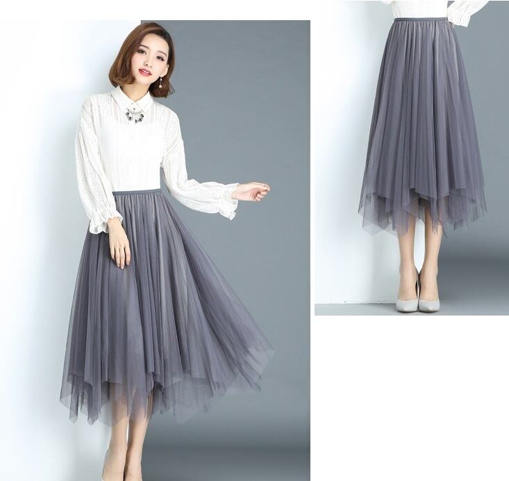 【送料無料】 チュールスカート 春夏 メッシュスカート ハイウェスト 無地 パラグラフパフ 妖精 エレガント SK-001SN