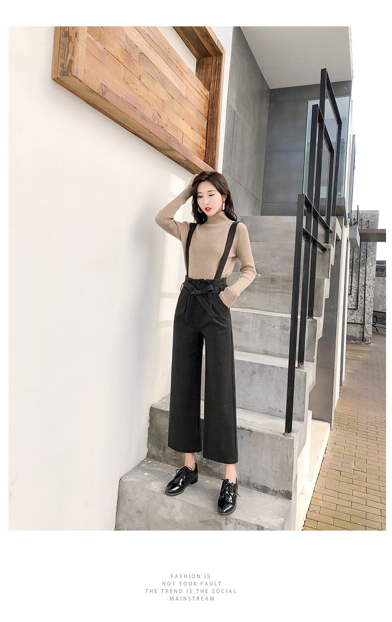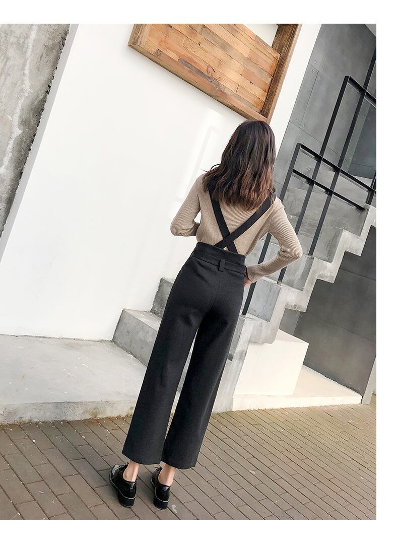【送料無料】 秋冬 サロペット ワイドレッグパンツ ハイウエストストレート BM-001KK