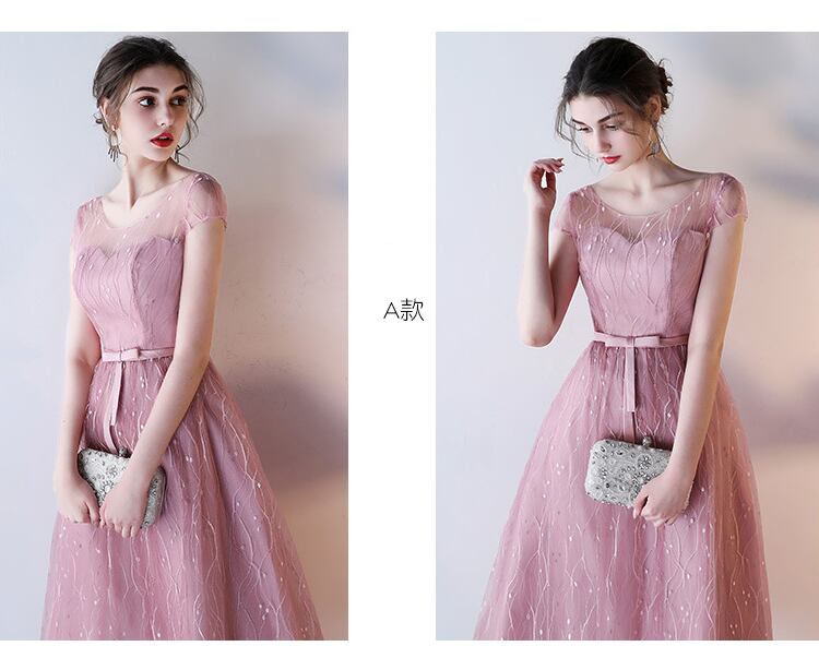 清楚でフェミニンなドレス。淡いピンク色が女性らしさを演出します。デザインも4種類あってどれも素敵♪ブライズメイドでお友達とデザイン違いで着るのも素敵ですね。お気に入りの1枚を選んでください。