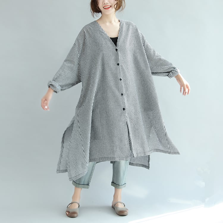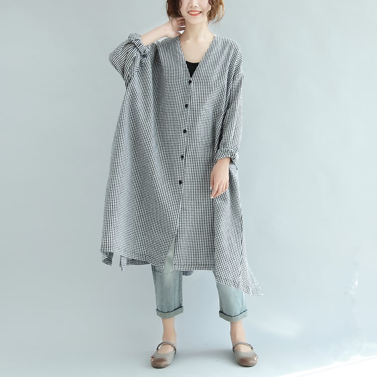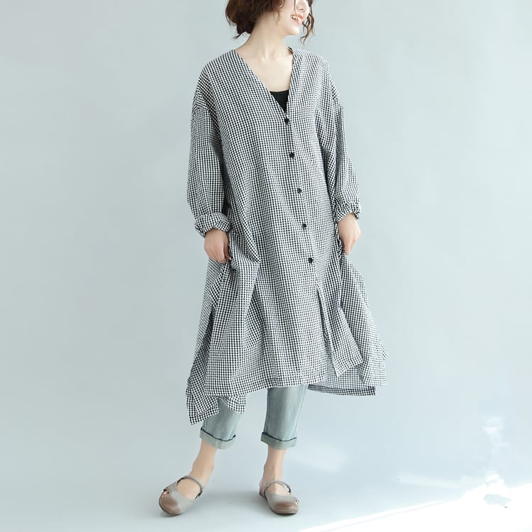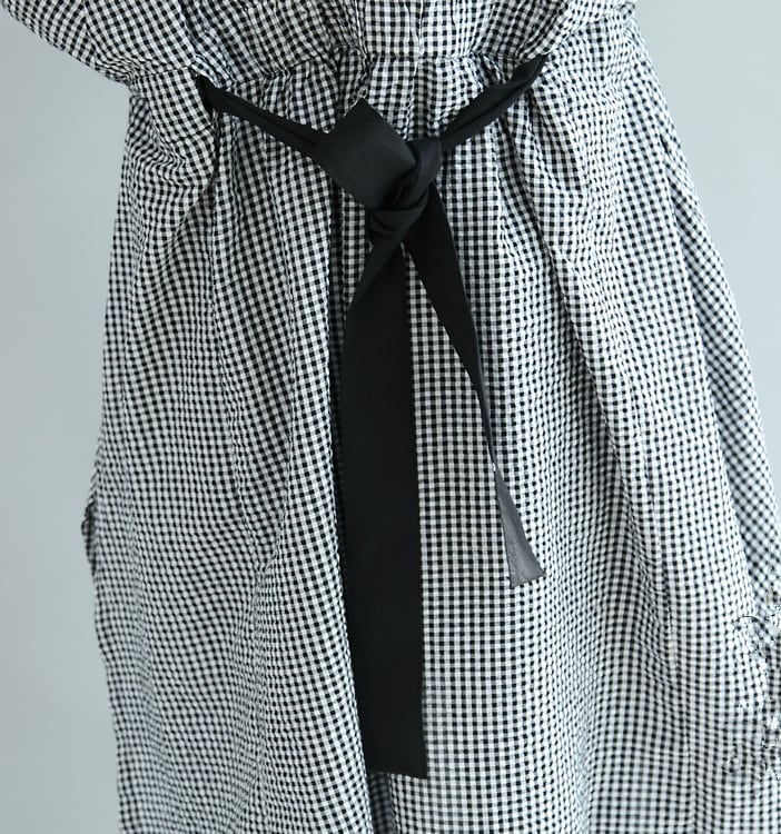 【送料無料】 チェック柄 チュニックワンピ シャツワンピース ワイドスリーブ 長袖 ロングシャツ ウエストリボン バックシャン ひざ下 オーバーサイズ フロントボタン ドロップショルダー ノーカラー Vネック シンプル カジュアル ゆったり 体型カバー 可愛い 大人可愛い 抜け感 お洒落 オルチャン 韓国 デイリー OP-055HM