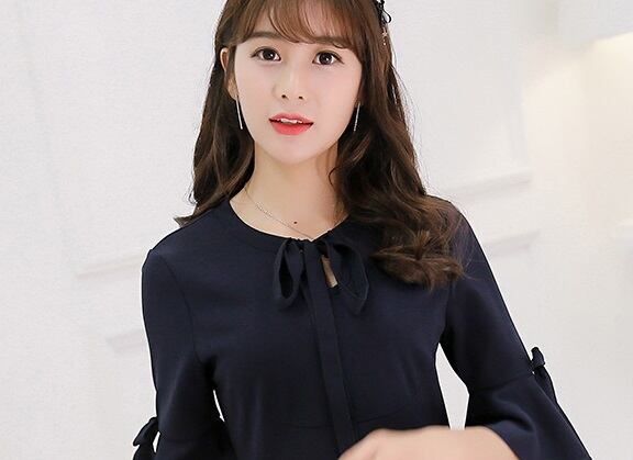 【送料無料】 フレア袖 ワンピース ハイウエスト Aライン フレアスリーブ リボン 無地 五分袖 ひざ丈 ひざ下 大人可愛い お洒落 フェミニン オルチャン 韓国 デイリー 女子会 デート 二次会 通勤 通学 春 夏 ネイビー 紺 OP-066HM