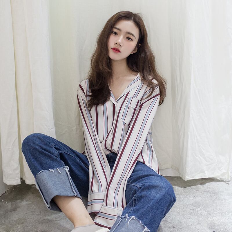 オーバーサイズが大人可愛いストライプ柄のシャツです。襟が開いているデザインはきちっとなりすぎず抜け感もプラス♪さっと羽織っておしゃれに着こなせる万能シャツは通勤通学からオフまで幅広くお使い頂けます☆