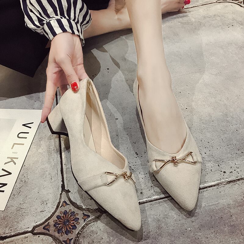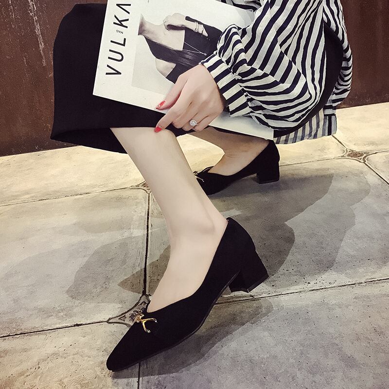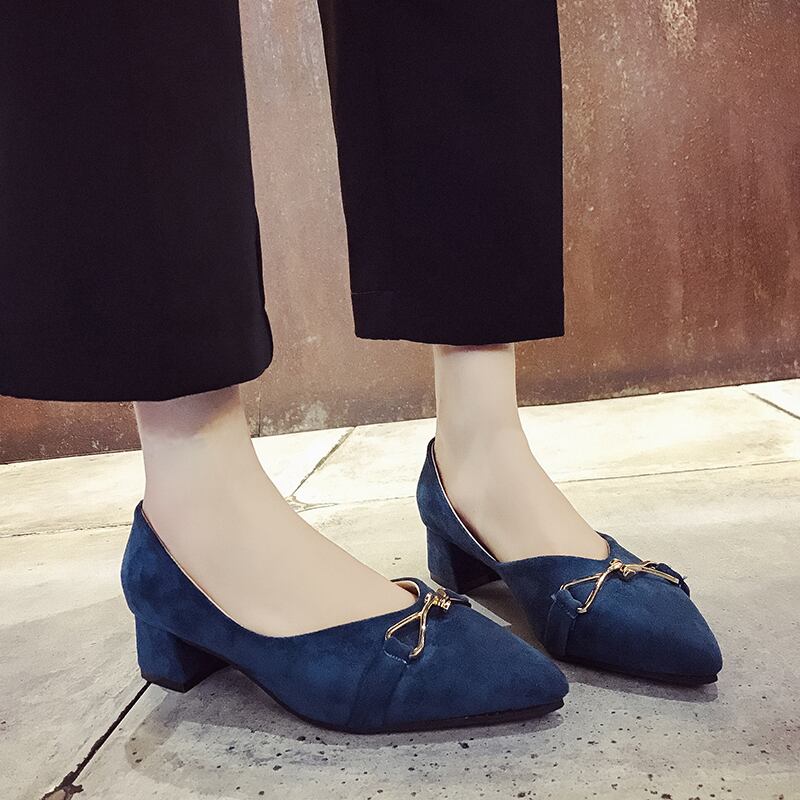 【送料無料】 チャンキーヒール ポインテッドトゥ パンプス ヒール4.5cm PUレザー スエード調 シンプル きれいめ 歩きやすい デイリー 可愛い 普段使い 通勤 通学 オフィス 韓国 オルチャン トレンド ブラック ベージュ ブルー FW-035HM