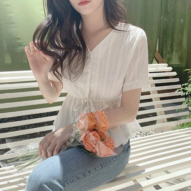 【送料無料】 全3色 ぺプラム Vネック 半袖トップス ブラウス 清楚 お洒落 シンプル 普段使い デイリー 女子会 デート 通勤 通学 オルチャン 韓国 ホワイト レッド ブラック 白 黒 赤 夏 TP-035HM