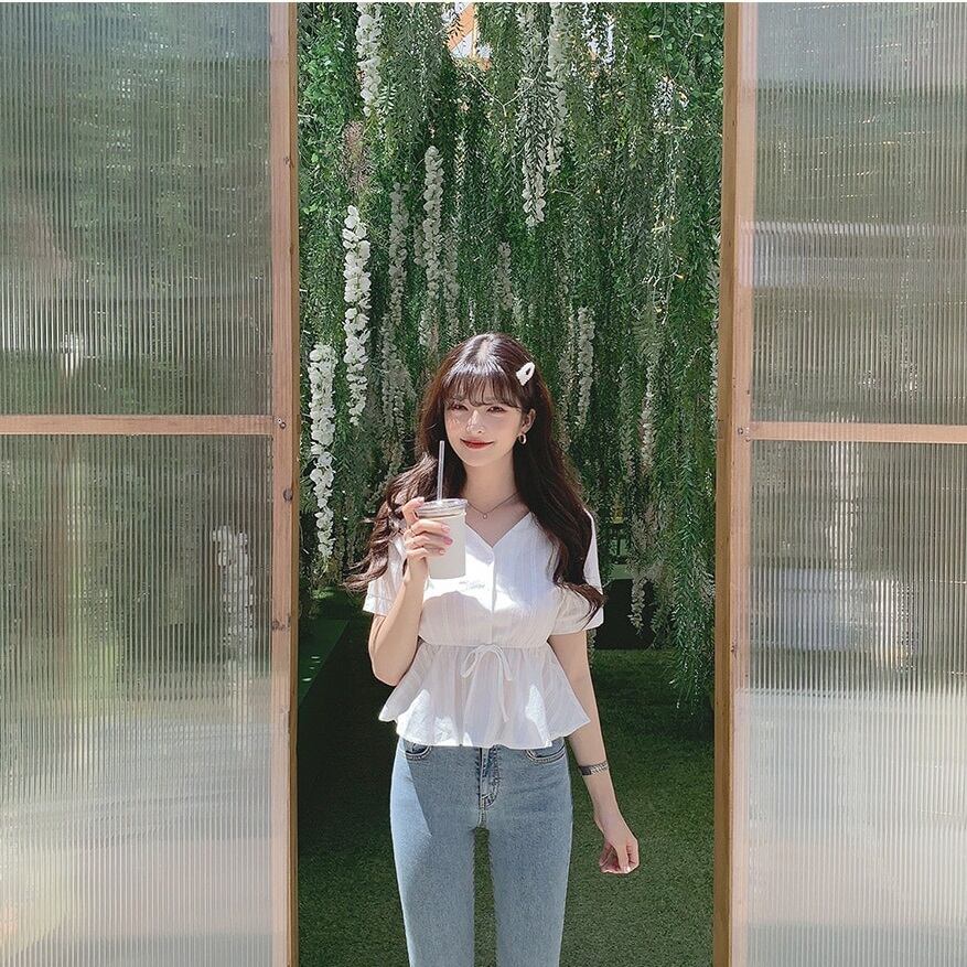 ショート丈のぺプラムトップスです♪夏らしいVネックで首元も涼しげに♪ショート丈なのでボトムスとのバランスも抜群♪シンプルなデザインなので通勤通学からオフまで幅広くお使い頂けます☆