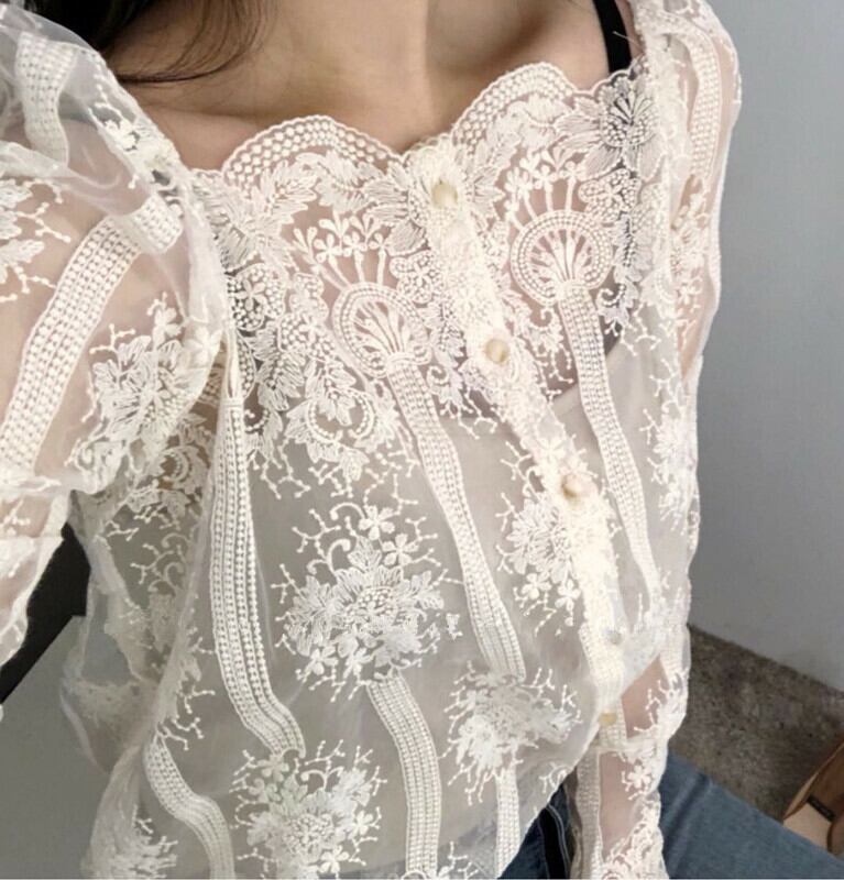 レースの透け感がセクシーで女性らしいブラウスです。大きく開いたネックに手首にはボタンが付いたお洒落なデザイン♪上品で清楚なデザインはカジュアルから綺麗めコーデまで幅広くお使い頂けます☆