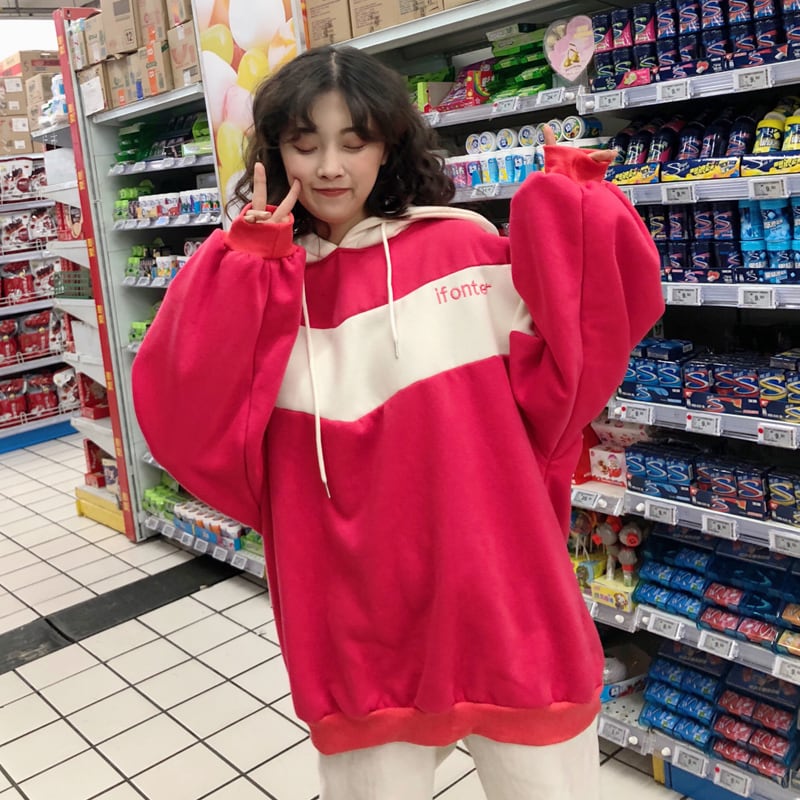 【送料無料】 ビッグシルエット バイカラー トレーナー フーディー パーカー ドロップショルダー オーバーサイズ ゆるシルエット ゆったり スポーティ カジュアル トレンド 韓国 オルチャン デイリー 通勤 通学 レッド グリーン ブルー 春 秋 冬 TP-050HM