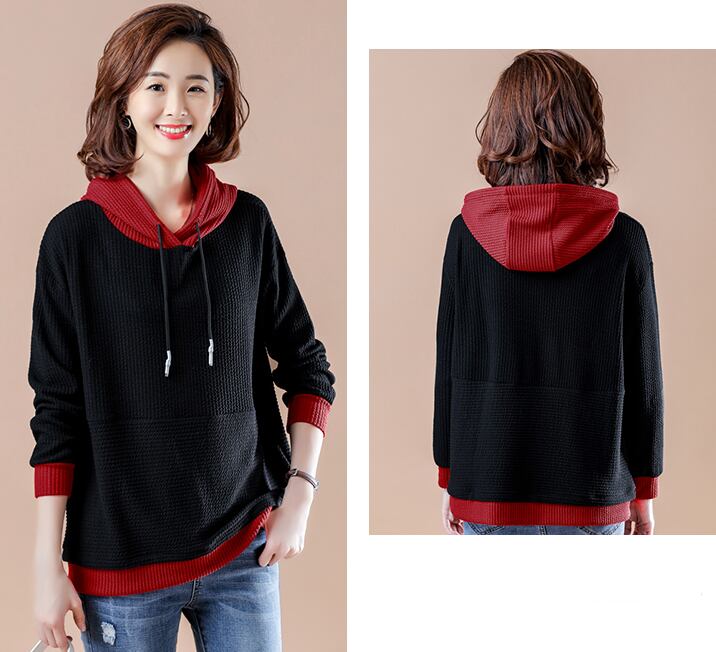 【送料無料】 大き目サイズ豊富 バイカラー トレーナー型 セーター 大人カジュアル フード付 長袖 L XL 2XL 3XL 4XL 5XL キャラメル ロイヤルブルー ブラック ダークグリーン 全4色 秋 冬 通勤 通学 普段使い シティー デート お出かけ デイリー TP-017KW