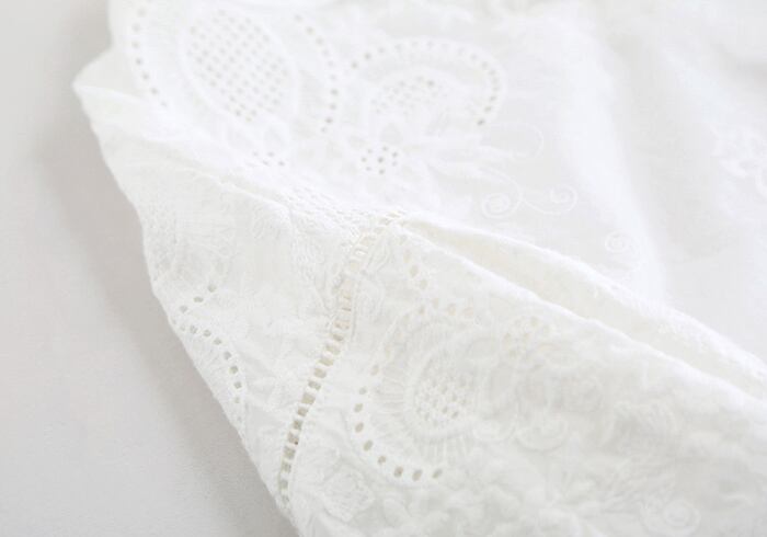 【送料無料】 七分袖 フロントボタン レース ブラウス オーバーサイズ バルーンスリーブ ボリューム袖 ラウンドネック パフスリーブ ワイド袖 ワイドスリーブ シャツ シンプル ゆるシルエット ゆったり 可愛い 大人カジュアル トレンド 韓国 オルチャン デイリー ホワイト 春 夏 秋 SH-024HM