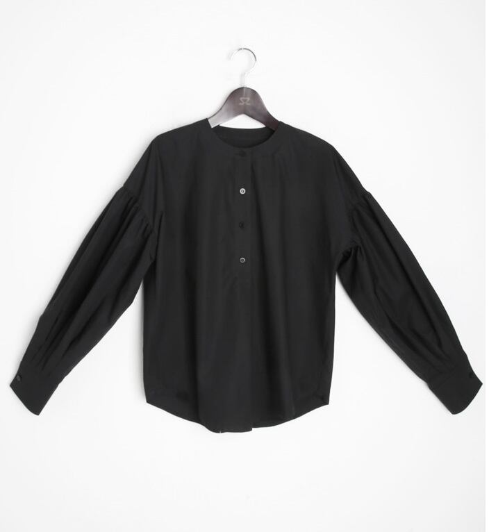 【送料無料】 バルーンスリーブ 長袖ブラウス フロントボタン オーバーサイズ ボリューム袖 ラウンドネック パフスリーブ ワイド袖 ワイドスリーブ シャツ シンプル ゆるシルエット ゆったり お洒落 大人カジュアル きれいめ トレンド 韓国 オルチャン デイリー 女子会 二次会 お呼ばれ ブラック ホワイト 春 秋 TP-058HM