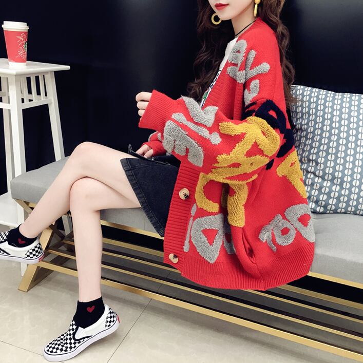 【送料無料】 カラフル ユニーク 起毛テキスト もこもこ ゆるカジ ゆったり 肩落ちスタイル カーディガン 大人カジュアル キュート ガーリー アウター カーキ ネイビー レッド 全3色 春 秋 冬 デイリー スポーツ 通勤 通学 デート 旅行 レジャー OT-026KW