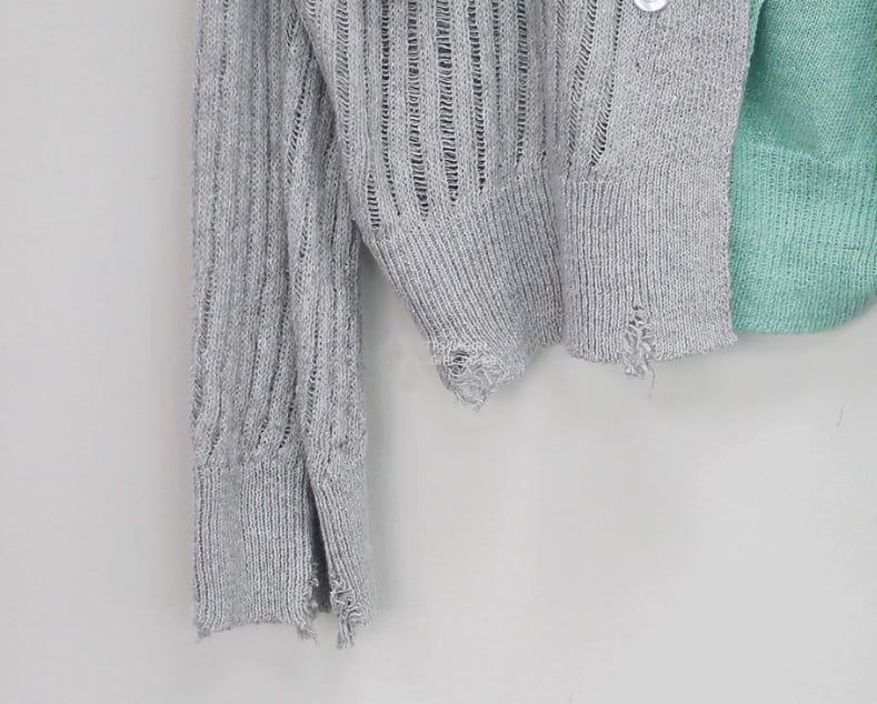 【送料無料】 ゆるカジ ダメージド アシンメトリー カーディガン バイカラー ルーズフィット ざっくりニット ユニーク デザイン リブ ニット 長袖 グリーンアッシュ イエローアッシュ 全2色 通勤 通学 レジャー 普段使い シティー デート 女子会 お出かけ デイリー TP-064KW