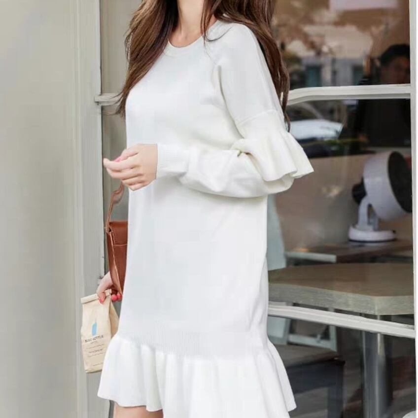 袖とスカートの裾にフリルがポイントのワンピースです。一枚は欲しいトレンドライクな可愛いデザイン♪これからの季節にアウターとも相性◎