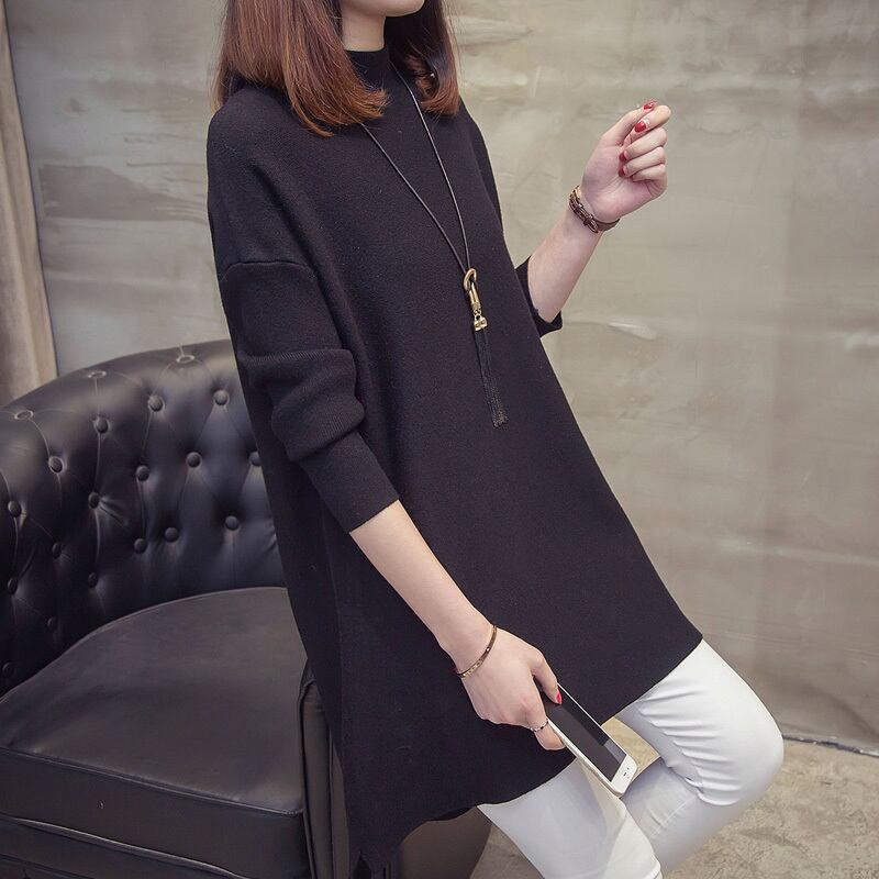 【送料無料】 全5色 ハイネック ニットソー アシンメトリー シンプル チュニック ドロップショルダー オーバーサイズ ゆるシルエット ゆったり 長袖 ワイドシルエット 抜け感 お洒落 カジュアル トレンド 韓国 オルチャン デイリー 秋冬 TP-061HM