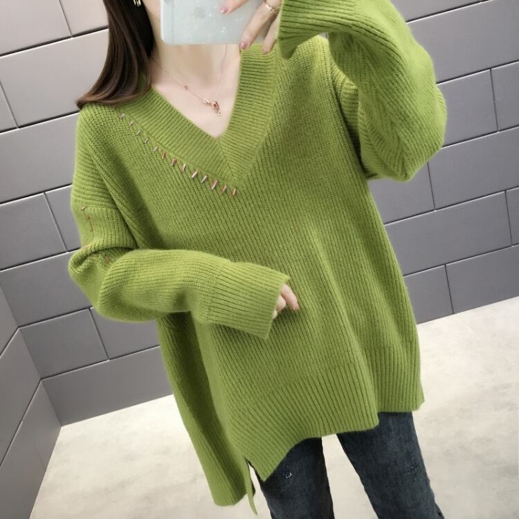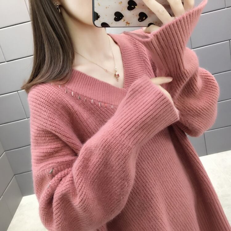 【送料無料】 全4色 イレヘム Vネック ニットソー セーター ざっくりニット アシンメトリー シンプル ドロップショルダー オーバーサイズ ゆるシルエット ゆったり 長袖 ワイドシルエット 抜け感 お洒落 カジュアル トレンド 韓国 オルチャン デイリー 秋冬 TP-063HM