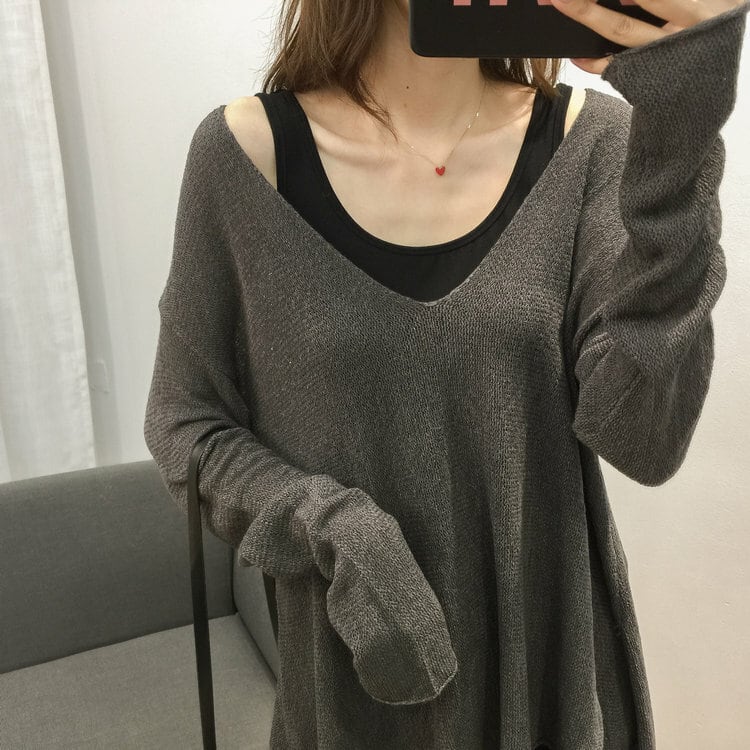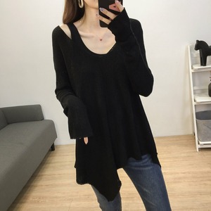【送料無料】 イレヘム Vネック ニットソー テールカット アシンメトリー シンプル ドロップショルダー オーバーサイズ ゆるシルエット ゆったり 長袖 ゆるかわ 抜け感 お洒落 大人カジュアル トレンド 韓国 オルチャン デイリー 秋冬 TP-065HM