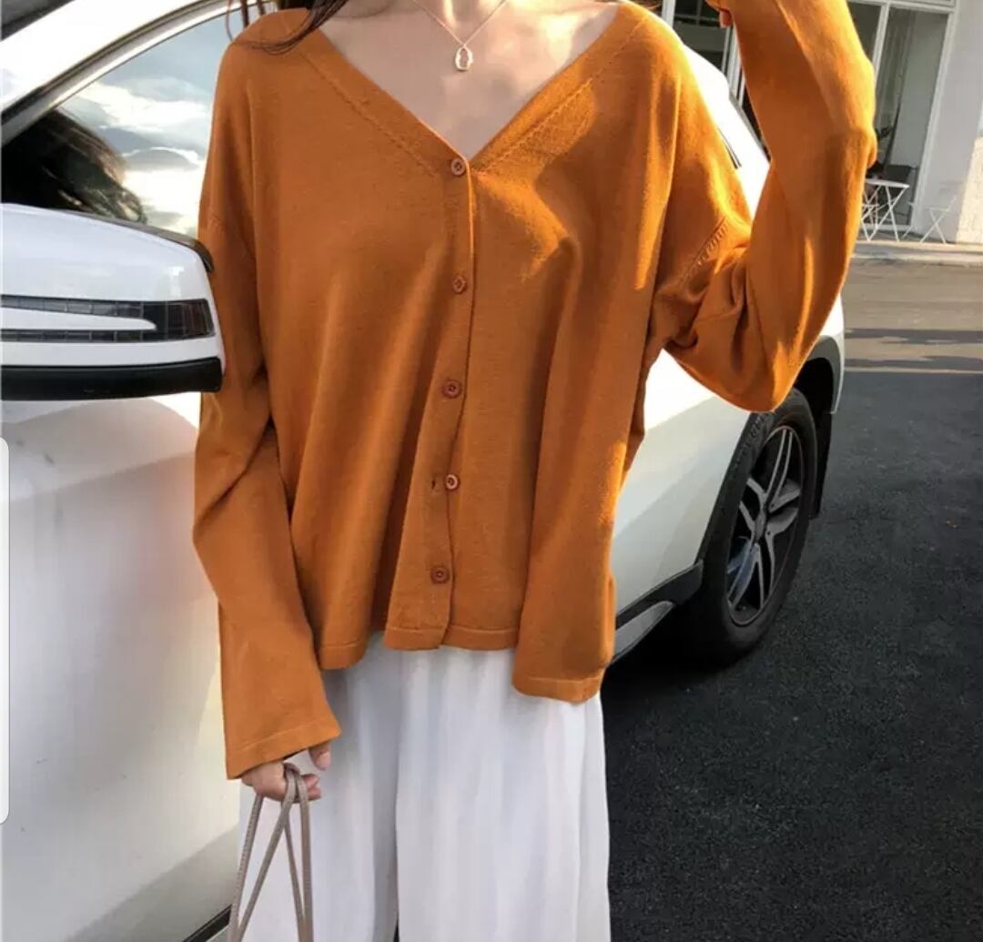 シーズン問わず着用出来る薄めタイプのカーディガン♪カジュアル感あるゆったりな大きめVネックが印象的♪1枚でも、羽織っても、中に着ても、どんなシーンにも対応出来るので持っていて損なし\♡/