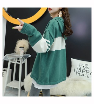 ビッグシルエットがゆる可愛いニットパーカーです。カラフルバイカラーがコーデのアクセントに♪楽ちんでデイリーに着れるアイテムです☆