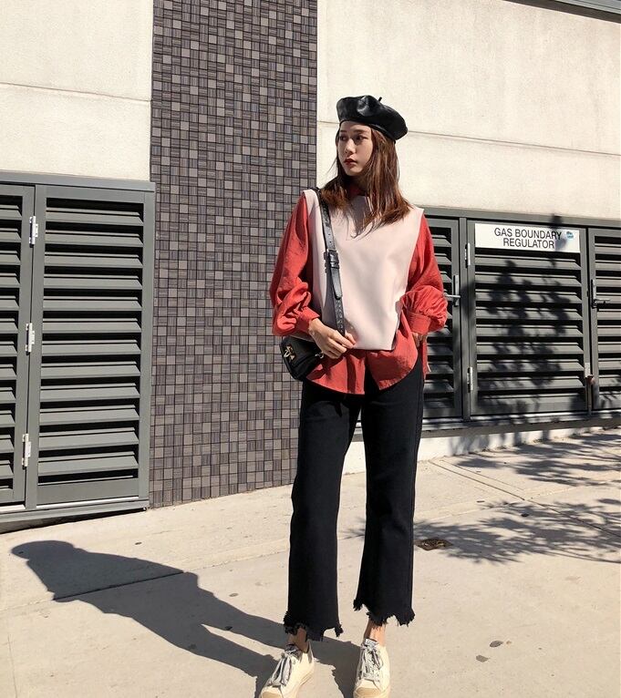 【送料無料】 レイヤード風 パフスリーブ ブラウス 袖コンシャス ゆるシルエット 長袖 シャツ ゆるかわ 抜け感 お洒落 トレンド 韓国 オルチャン デイリー 通勤 通学 デート 秋冬 TP-068HM
