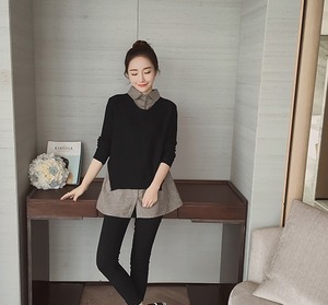 【送料無料】 レイヤード風 チュニック トップス シャツ 体型カバー 長袖 シャツ ゆるかわ 抜け感 お洒落 スタイリッシュ きれいめ トレンド 韓国 オルチャン デイリー 通勤 通学 デート 秋冬 大きいサイズ TP-070HM