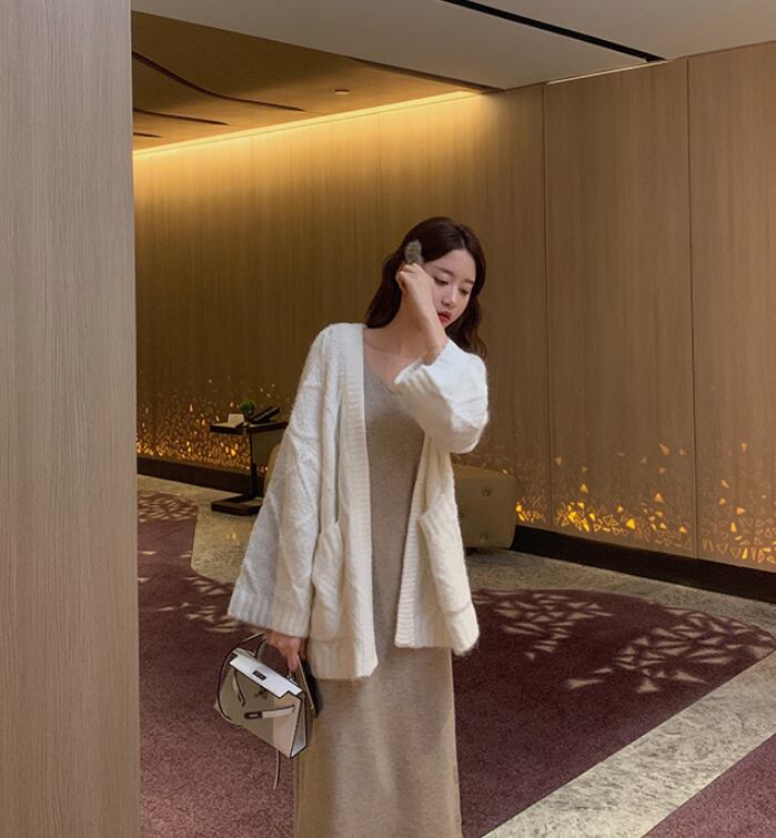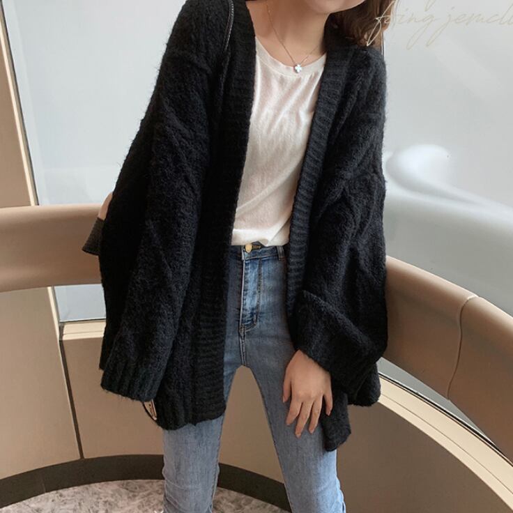 【送料無料】 ダイヤ模様 ケーブルニット カーディガン ワイドスリーブ 無地 Vネック 長袖 ブラック ダークアプリコット ホワイト 全3色 フェミニン 通勤 通学 レジャー 普段使い シティー デート 女子会 お出かけ お呼ばれ デイリー TP-078KW