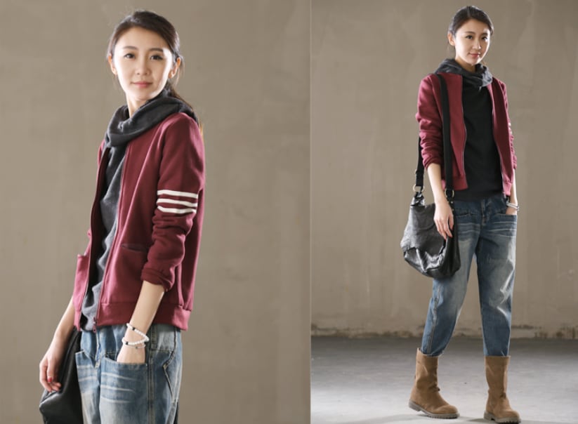 【送料無料】 全3色 大人カジュアル コットン ブルゾン 3本ライン アウター 長袖 韓国 トレンド 秋 ワインレッド ブラック コーヒー スポーティー デイリー レジャー 旅行 通学 普段使い OT-046KW