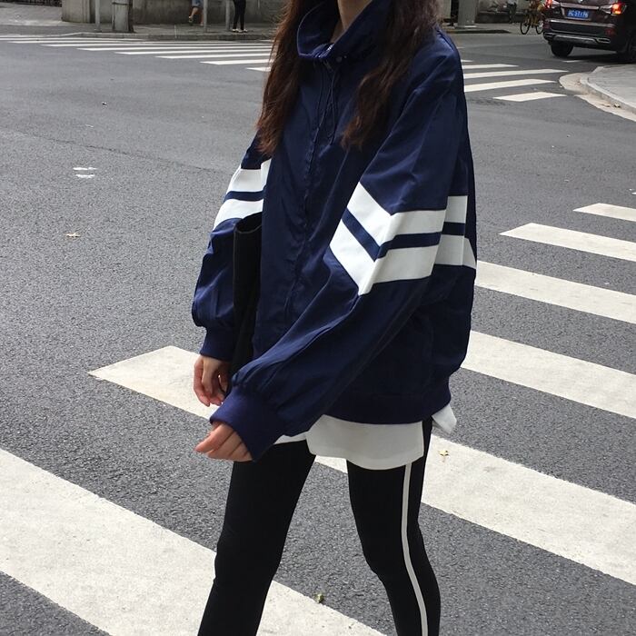 【送料無料】 アウター パーカー ジャンパー ブルゾン バイカラー ストリート フード ブルー パープル ゆったり 着回し お洒落 ゆるカジ カジュアル 韓国 オルチャン OT-001KB