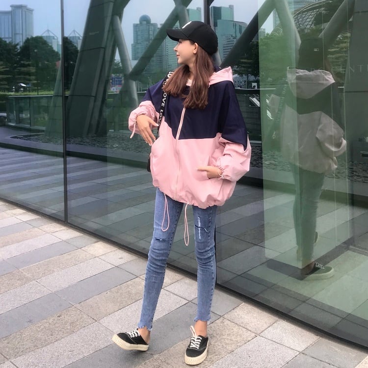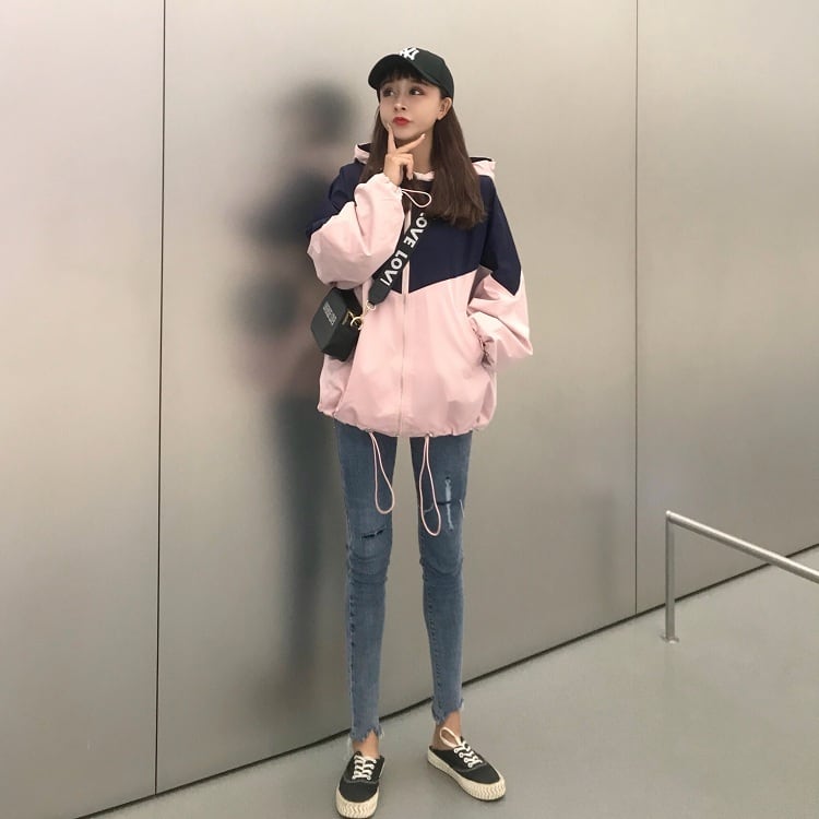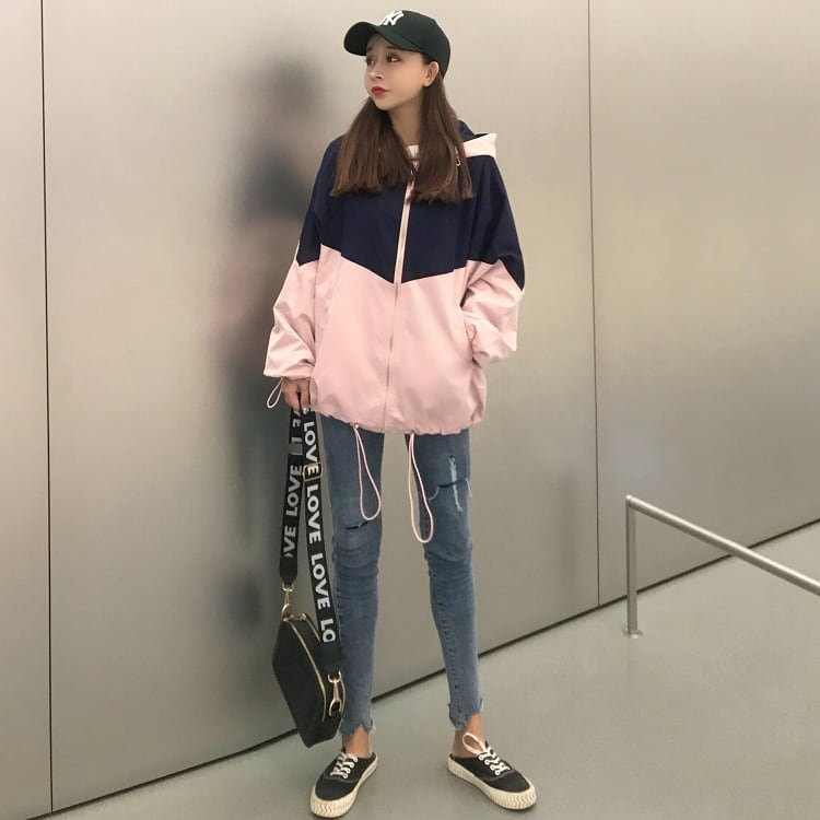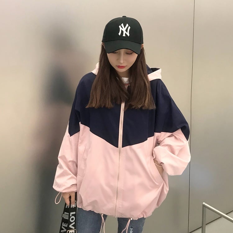 【送料無料】 アウター 秋冬 ナイロン ストリート スポーティー 原宿 ワイルド ジャケット オーバーサイズ フード付き ピンク ゆったり お洒落 トレンド 可愛い ゆるカジ カジュアル 韓国 オルチャン OT-003KB